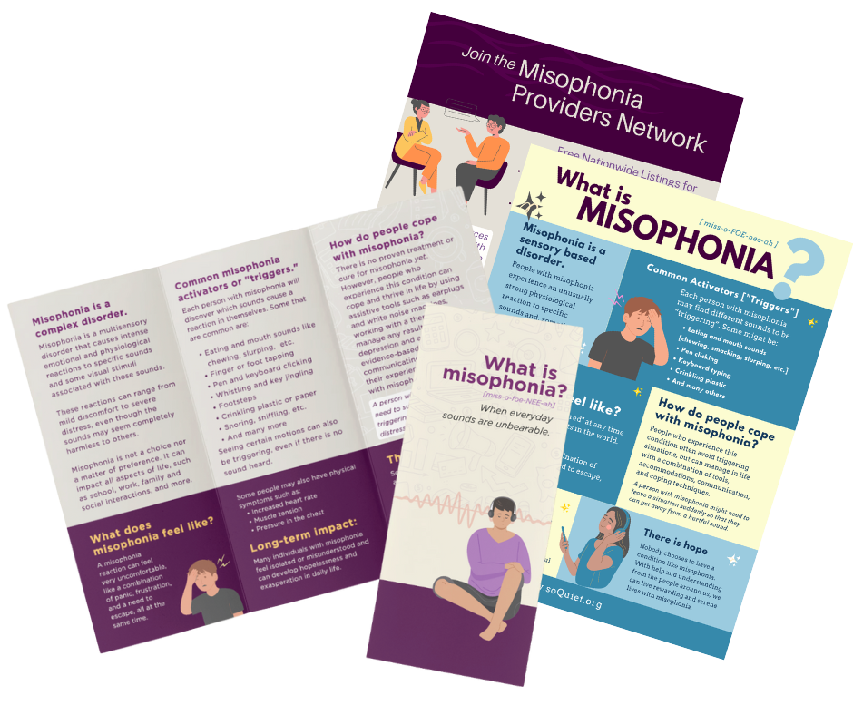 If you are a medical professional, such as pediatrician, psychologist, or occupational therapist, you can request a free Misophonia Clinician Welcome Kit here.